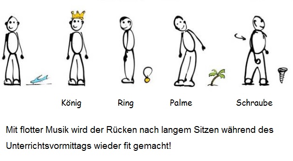 Bewegung und Gesundheit sind unverzichtbarer Bestandteil der Bildungs- und Erziehungsarbeit an allen Schulen. Wir versuchen das Bewusstsein unserer Schülerinnen und Schüler dahingehend zu stärken, indem wir nicht nur im Sportunterricht, sondern auch im Klassenzimmer immer wieder abwechslungsreiche und zielgerichtete Bewegungspausen zwischen den Unterrichtsphasen einplanen.